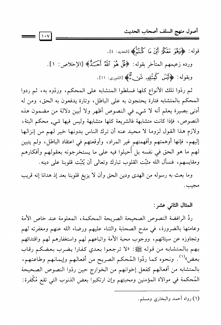 نام کتاب : المختصر الحثيث في بيان أصول منهج السلف أصحاب الحديث في تلقي الدين وفهمه والعمل به والدعوة إليه نویسنده : عيسى مال الله فرج جلد : 1 صفحه : 107