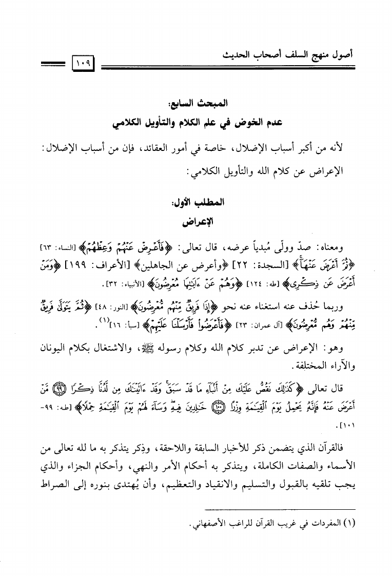 نام کتاب : المختصر الحثيث في بيان أصول منهج السلف أصحاب الحديث في تلقي الدين وفهمه والعمل به والدعوة إليه نویسنده : عيسى مال الله فرج جلد : 1 صفحه : 109