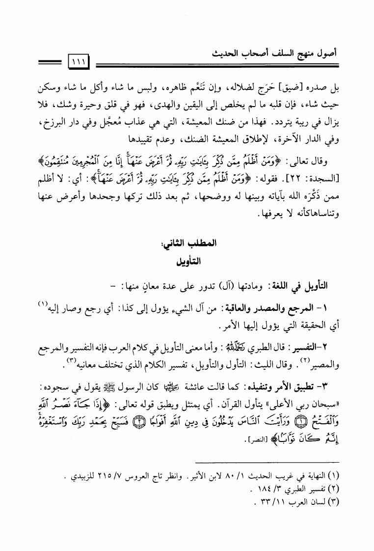 نام کتاب : المختصر الحثيث في بيان أصول منهج السلف أصحاب الحديث في تلقي الدين وفهمه والعمل به والدعوة إليه نویسنده : عيسى مال الله فرج جلد : 1 صفحه : 111