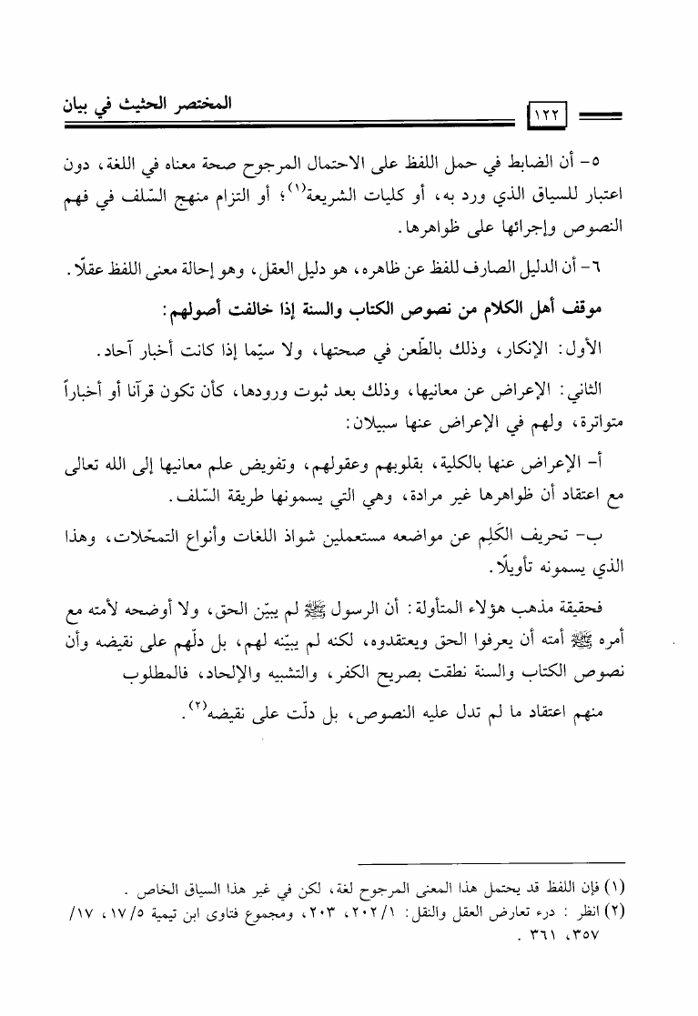 نام کتاب : المختصر الحثيث في بيان أصول منهج السلف أصحاب الحديث في تلقي الدين وفهمه والعمل به والدعوة إليه نویسنده : عيسى مال الله فرج جلد : 1 صفحه : 122