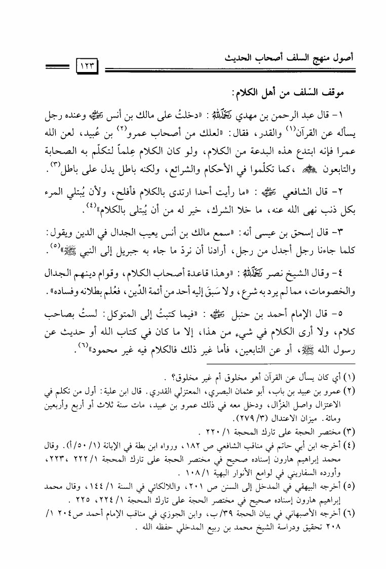 نام کتاب : المختصر الحثيث في بيان أصول منهج السلف أصحاب الحديث في تلقي الدين وفهمه والعمل به والدعوة إليه نویسنده : عيسى مال الله فرج جلد : 1 صفحه : 123