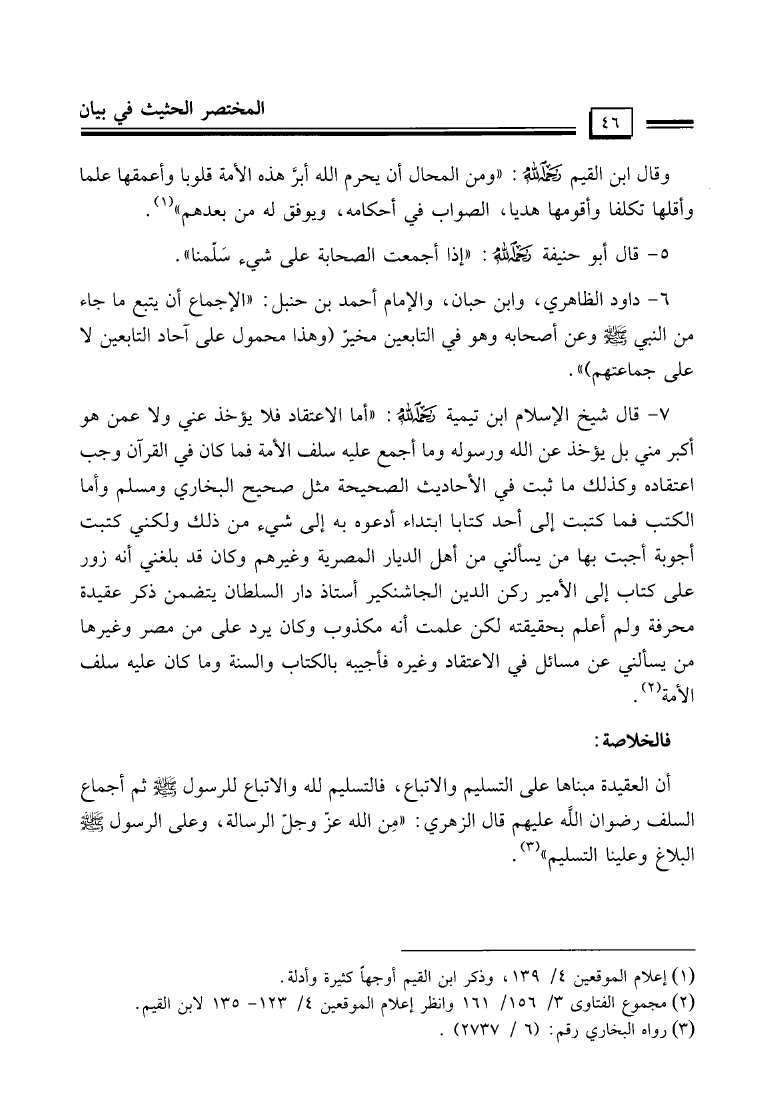 نام کتاب : المختصر الحثيث في بيان أصول منهج السلف أصحاب الحديث في تلقي الدين وفهمه والعمل به والدعوة إليه نویسنده : عيسى مال الله فرج جلد : 1 صفحه : 46