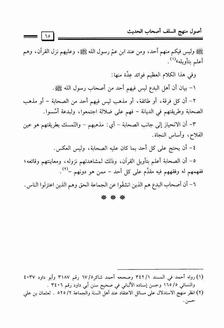 نام کتاب : المختصر الحثيث في بيان أصول منهج السلف أصحاب الحديث في تلقي الدين وفهمه والعمل به والدعوة إليه نویسنده : عيسى مال الله فرج جلد : 1 صفحه : 65