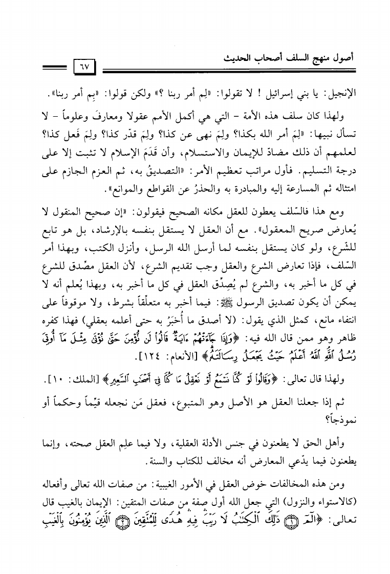 نام کتاب : المختصر الحثيث في بيان أصول منهج السلف أصحاب الحديث في تلقي الدين وفهمه والعمل به والدعوة إليه نویسنده : عيسى مال الله فرج جلد : 1 صفحه : 67
