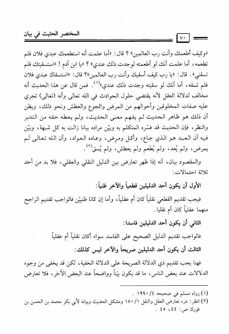 نام کتاب : المختصر الحثيث في بيان أصول منهج السلف أصحاب الحديث في تلقي الدين وفهمه والعمل به والدعوة إليه نویسنده : عيسى مال الله فرج جلد : 1 صفحه : 70