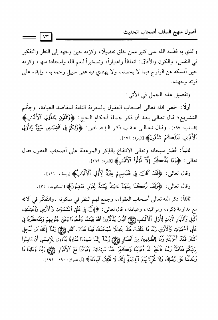 نام کتاب : المختصر الحثيث في بيان أصول منهج السلف أصحاب الحديث في تلقي الدين وفهمه والعمل به والدعوة إليه نویسنده : عيسى مال الله فرج جلد : 1 صفحه : 73