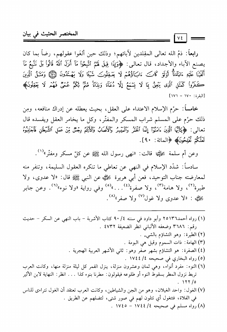 نام کتاب : المختصر الحثيث في بيان أصول منهج السلف أصحاب الحديث في تلقي الدين وفهمه والعمل به والدعوة إليه نویسنده : عيسى مال الله فرج جلد : 1 صفحه : 74