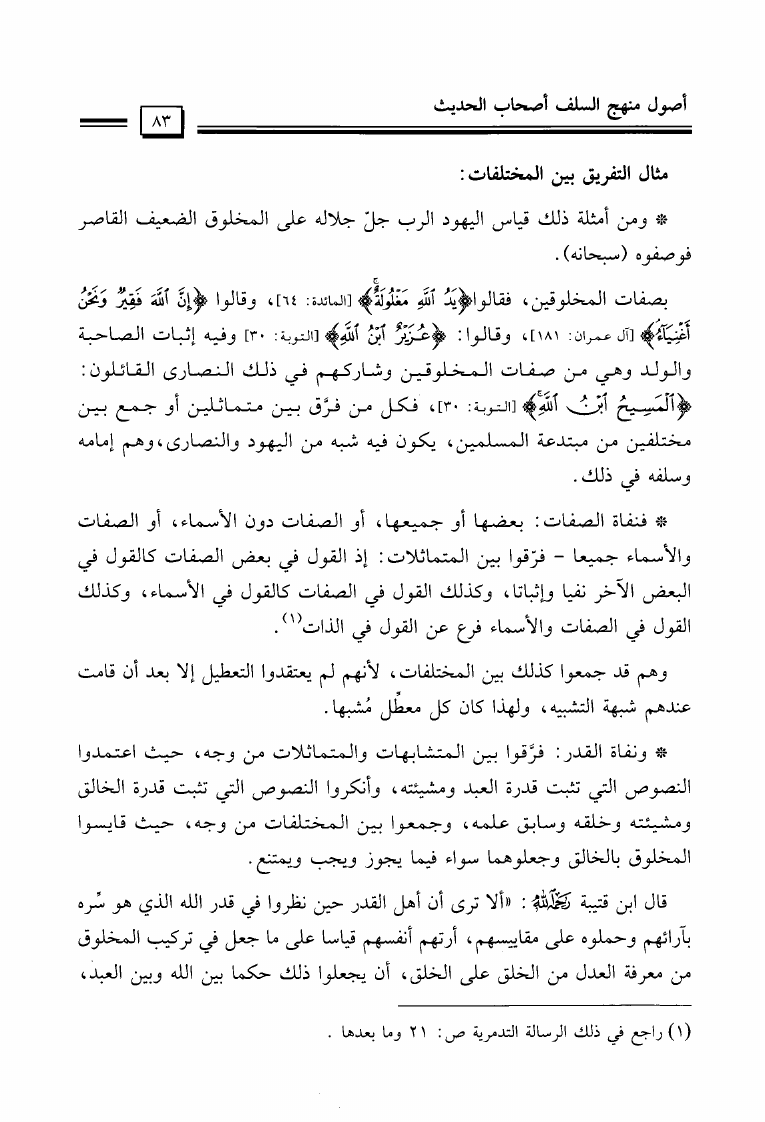 نام کتاب : المختصر الحثيث في بيان أصول منهج السلف أصحاب الحديث في تلقي الدين وفهمه والعمل به والدعوة إليه نویسنده : عيسى مال الله فرج جلد : 1 صفحه : 83