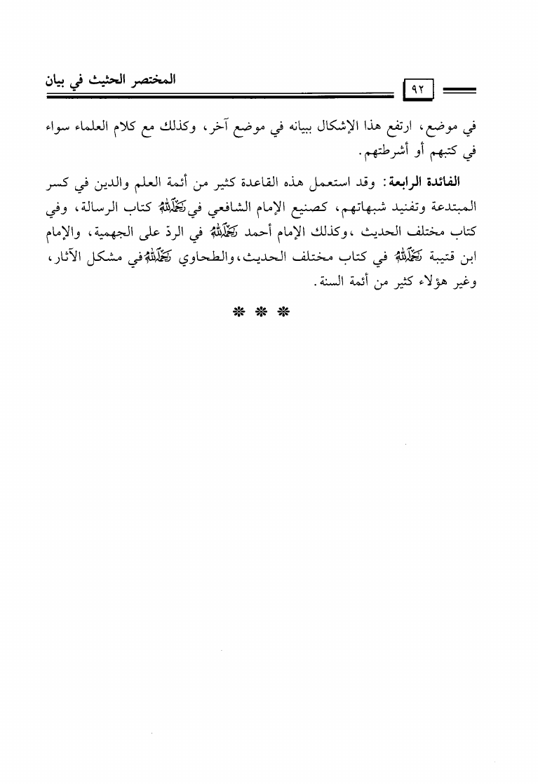 نام کتاب : المختصر الحثيث في بيان أصول منهج السلف أصحاب الحديث في تلقي الدين وفهمه والعمل به والدعوة إليه نویسنده : عيسى مال الله فرج جلد : 1 صفحه : 92