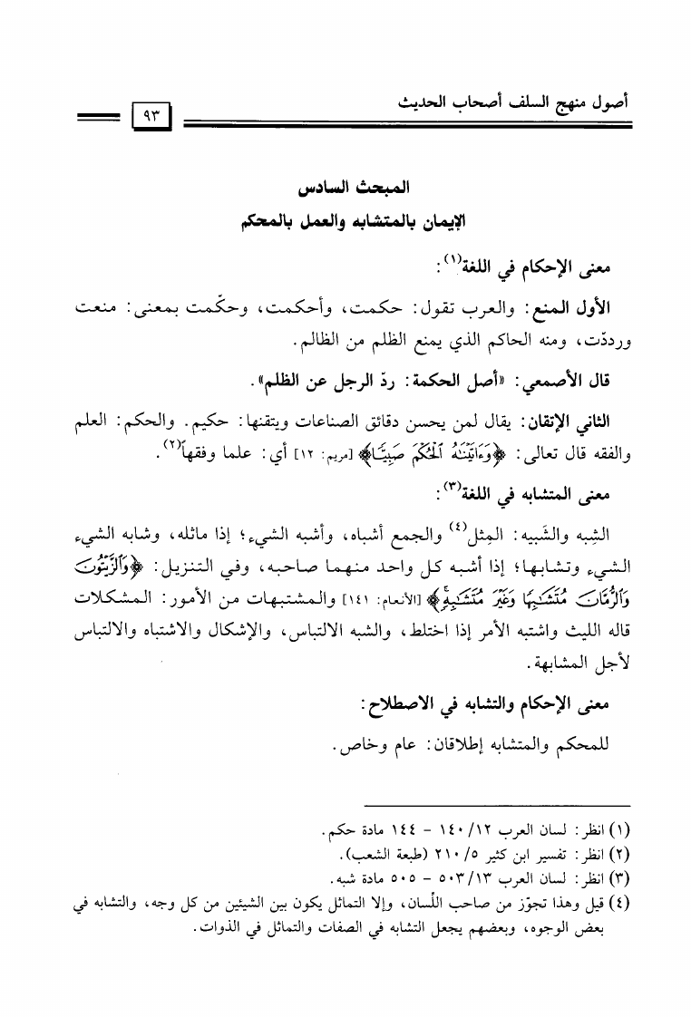 نام کتاب : المختصر الحثيث في بيان أصول منهج السلف أصحاب الحديث في تلقي الدين وفهمه والعمل به والدعوة إليه نویسنده : عيسى مال الله فرج جلد : 1 صفحه : 93