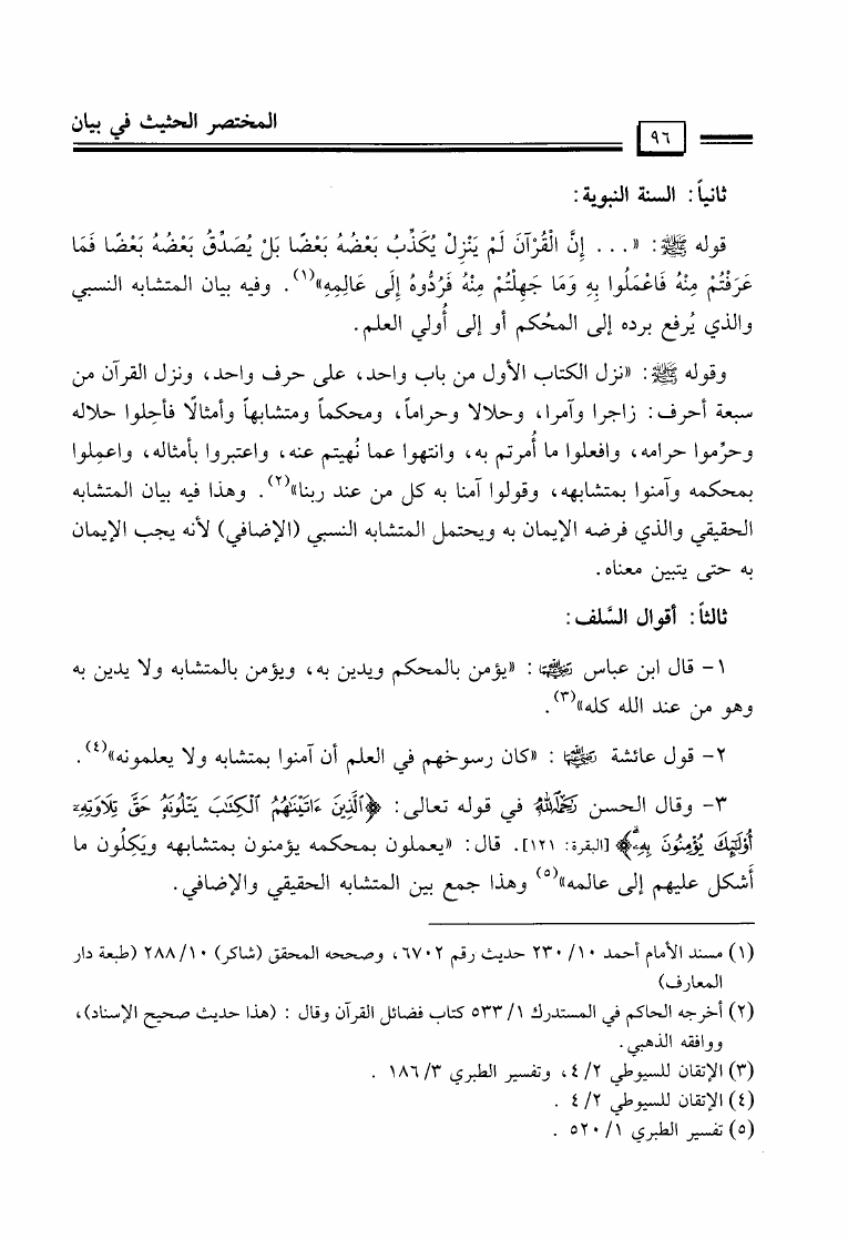 نام کتاب : المختصر الحثيث في بيان أصول منهج السلف أصحاب الحديث في تلقي الدين وفهمه والعمل به والدعوة إليه نویسنده : عيسى مال الله فرج جلد : 1 صفحه : 96