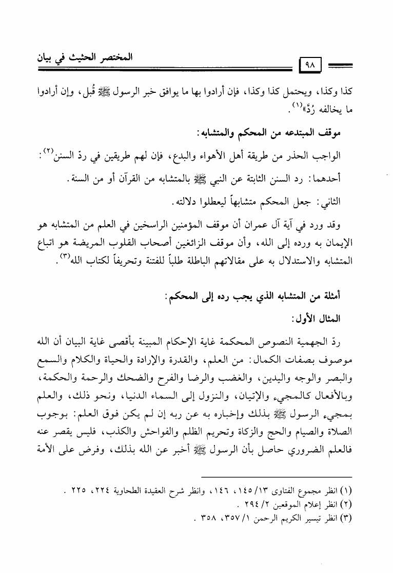 نام کتاب : المختصر الحثيث في بيان أصول منهج السلف أصحاب الحديث في تلقي الدين وفهمه والعمل به والدعوة إليه نویسنده : عيسى مال الله فرج جلد : 1 صفحه : 98