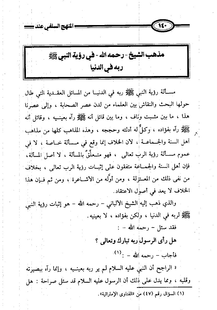 المنهج السلفي عند الشيخ ناصر الدين الألباني