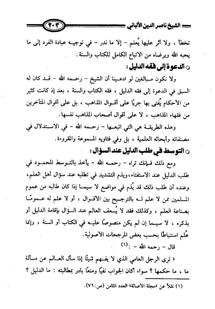 المنهج السلفي عند الشيخ ناصر الدين الألباني