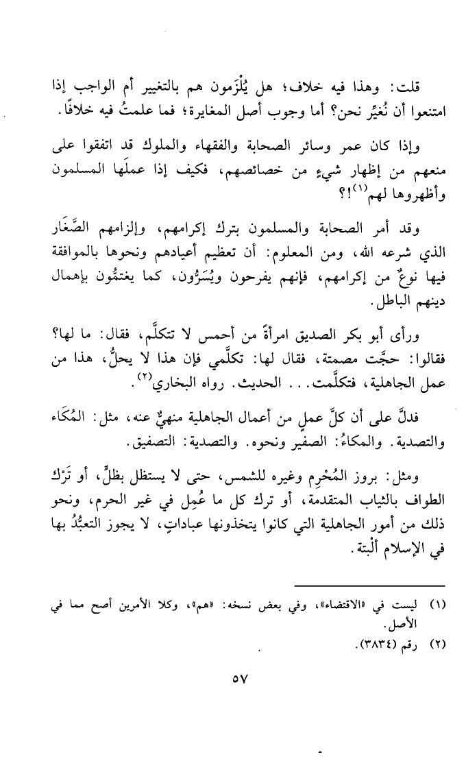 نام کتاب : المنهج القويم في اختصار اقتضاء الصراط المستقيم لشيخ الإسلام ابن تيمية (ط. المجمع) نویسنده : محمد بن علي بن محمد البعلي الحنبلي جلد : 1 صفحه : 57