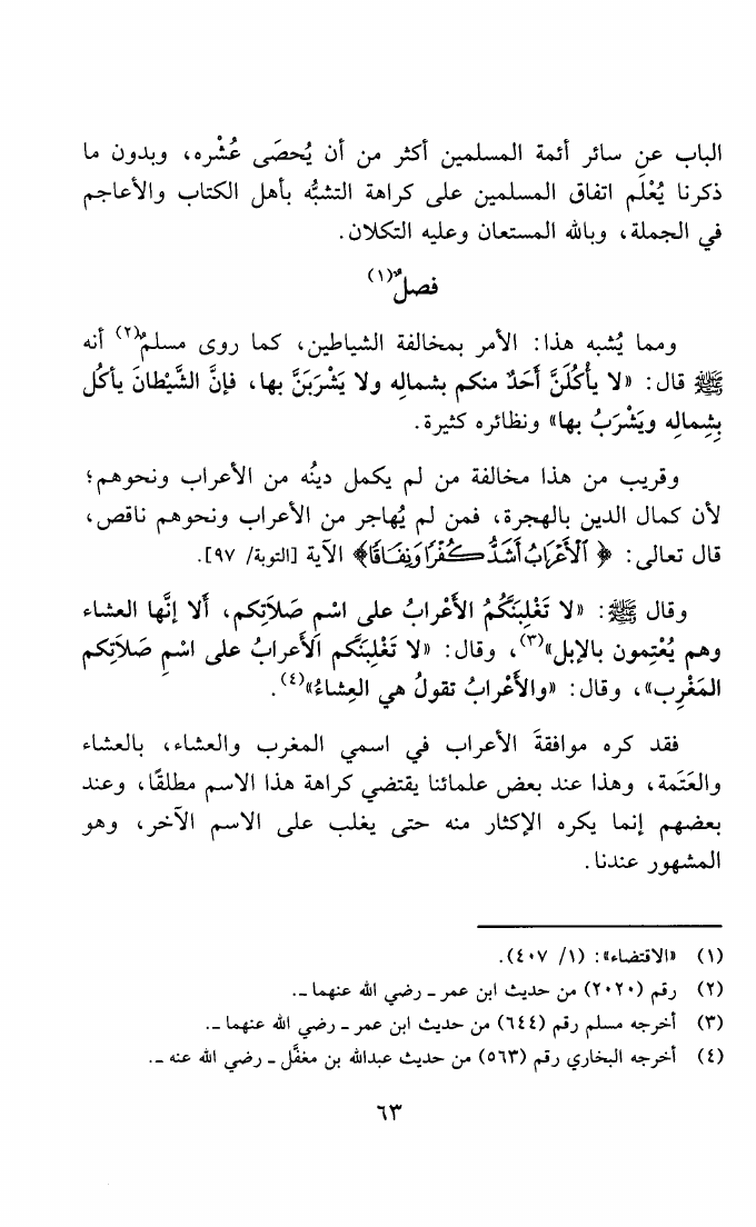 نام کتاب : المنهج القويم في اختصار اقتضاء الصراط المستقيم لشيخ الإسلام ابن تيمية (ط. المجمع) نویسنده : محمد بن علي بن محمد البعلي الحنبلي جلد : 1 صفحه : 63