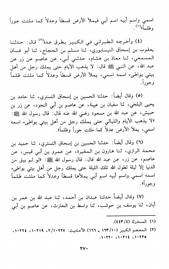 نام کتاب : المهدي المنتظر في ضوء الأحاديث والآثار الصحيحة وأقوال العلماء وآراء الفرق المختلفة نویسنده : عبد العليم عبد العظيم البستوي جلد : 1 صفحه : 270