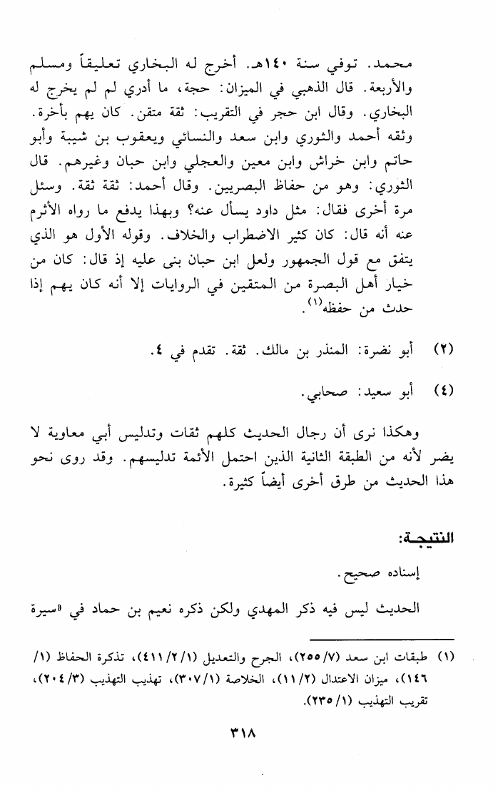 نام کتاب : المهدي المنتظر في ضوء الأحاديث والآثار الصحيحة وأقوال العلماء وآراء الفرق المختلفة نویسنده : عبد العليم عبد العظيم البستوي جلد : 1 صفحه : 318