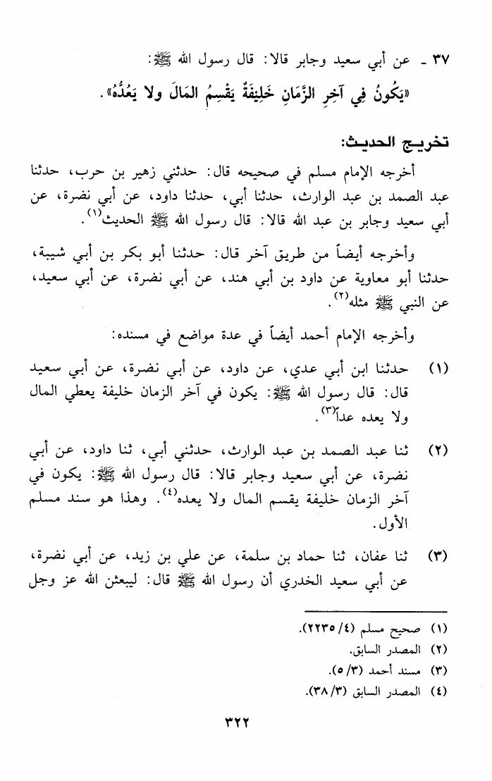 نام کتاب : المهدي المنتظر في ضوء الأحاديث والآثار الصحيحة وأقوال العلماء وآراء الفرق المختلفة نویسنده : عبد العليم عبد العظيم البستوي جلد : 1 صفحه : 322