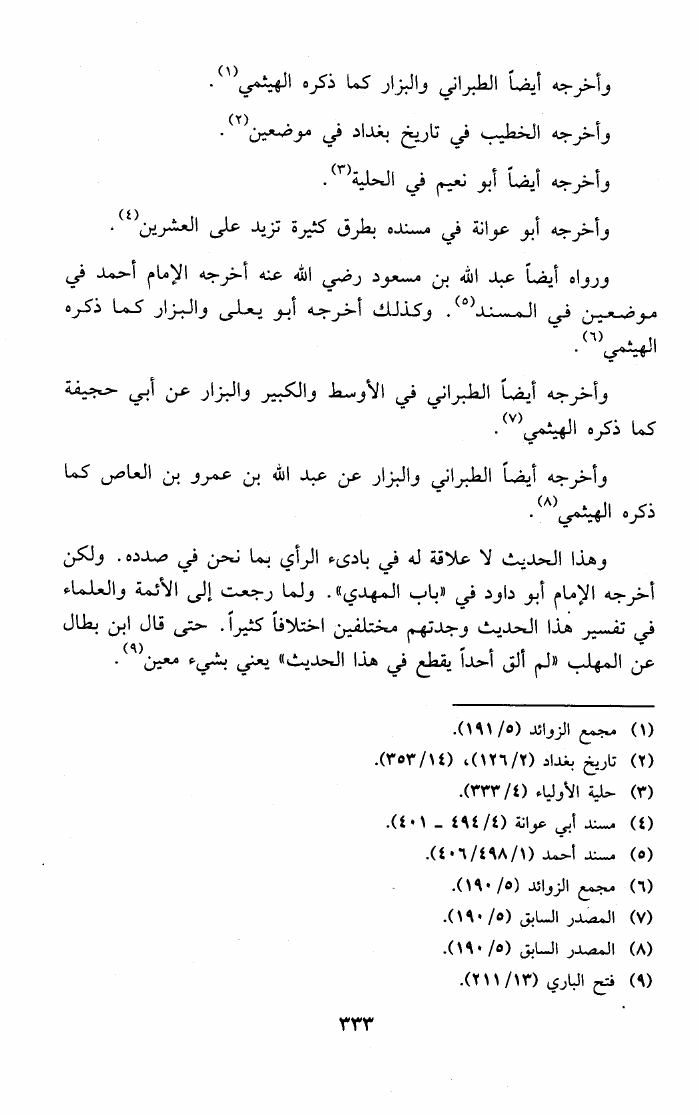 نام کتاب : المهدي المنتظر في ضوء الأحاديث والآثار الصحيحة وأقوال العلماء وآراء الفرق المختلفة نویسنده : عبد العليم عبد العظيم البستوي جلد : 1 صفحه : 333