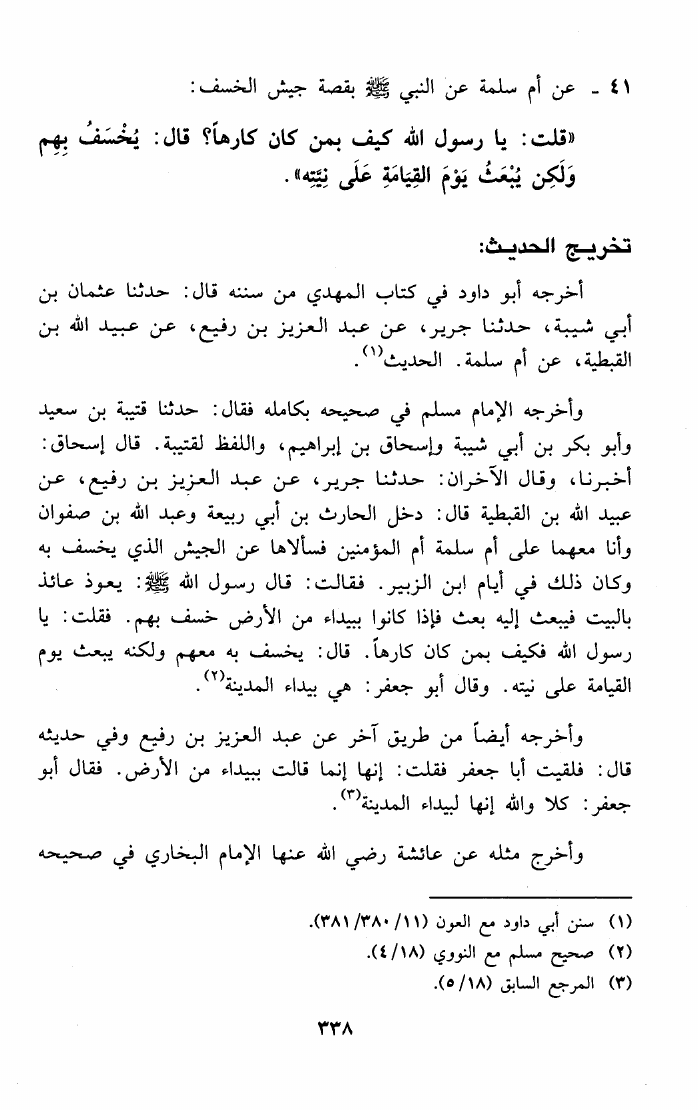 نام کتاب : المهدي المنتظر في ضوء الأحاديث والآثار الصحيحة وأقوال العلماء وآراء الفرق المختلفة نویسنده : عبد العليم عبد العظيم البستوي جلد : 1 صفحه : 338