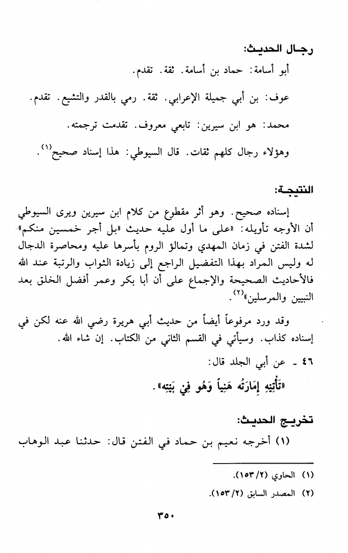 نام کتاب : المهدي المنتظر في ضوء الأحاديث والآثار الصحيحة وأقوال العلماء وآراء الفرق المختلفة نویسنده : عبد العليم عبد العظيم البستوي جلد : 1 صفحه : 350