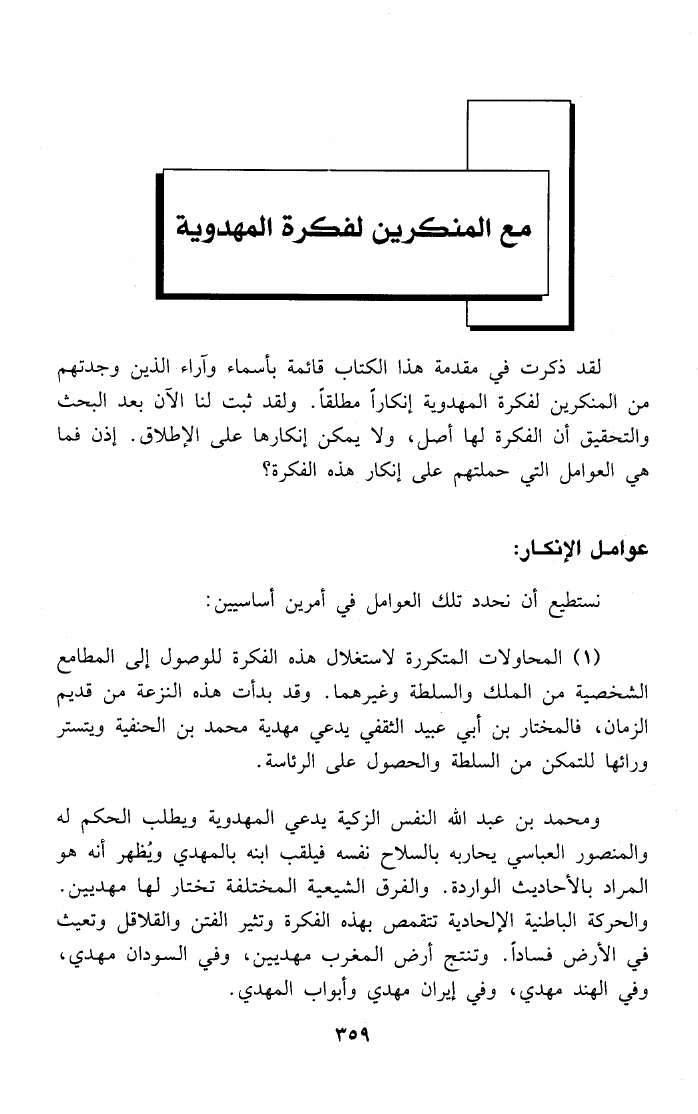 نام کتاب : المهدي المنتظر في ضوء الأحاديث والآثار الصحيحة وأقوال العلماء وآراء الفرق المختلفة نویسنده : عبد العليم عبد العظيم البستوي جلد : 1 صفحه : 359