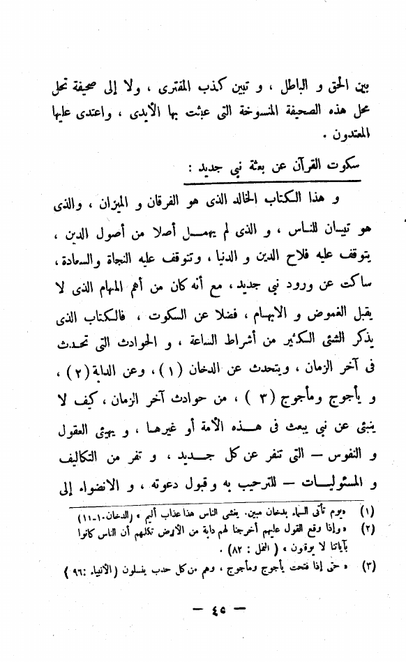 نام کتاب : النبي الخاتم بحث علمي ودراسة تحليلية في إختتام النبوة وإنقطاعها بعد محمد صلى الله عليه وسلم في ضوء الكتاب والسنة وتاريخ الديانات وفلسفة الإجتماع نویسنده : أبو الحسن علي الحسني الندوي جلد : 1 صفحه : 45