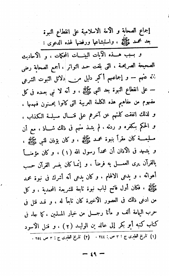 نام کتاب : النبي الخاتم بحث علمي ودراسة تحليلية في إختتام النبوة وإنقطاعها بعد محمد صلى الله عليه وسلم في ضوء الكتاب والسنة وتاريخ الديانات وفلسفة الإجتماع نویسنده : أبو الحسن علي الحسني الندوي جلد : 1 صفحه : 49