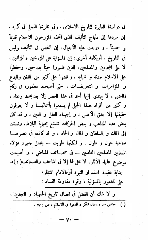 نام کتاب : النبي الخاتم بحث علمي ودراسة تحليلية في إختتام النبوة وإنقطاعها بعد محمد صلى الله عليه وسلم في ضوء الكتاب والسنة وتاريخ الديانات وفلسفة الإجتماع نویسنده : أبو الحسن علي الحسني الندوي جلد : 1 صفحه : 70
