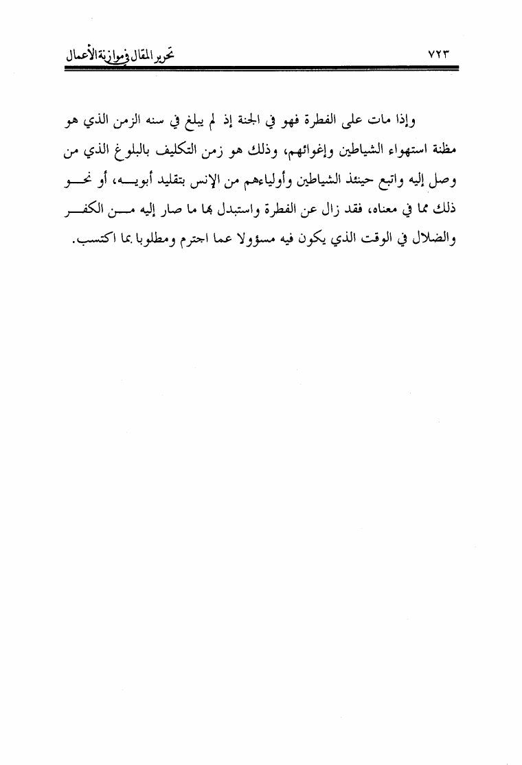 تحرير المقال في موازنة الأعمال وحكم غير المكلفين في العقبى والمآل، ومعه مراتب الجزاء