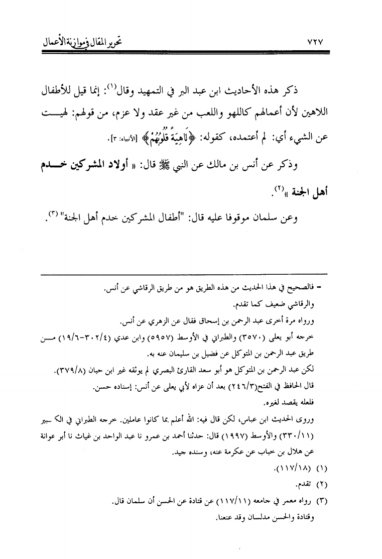 تحرير المقال في موازنة الأعمال وحكم غير المكلفين في العقبى والمآل، ومعه مراتب الجزاء