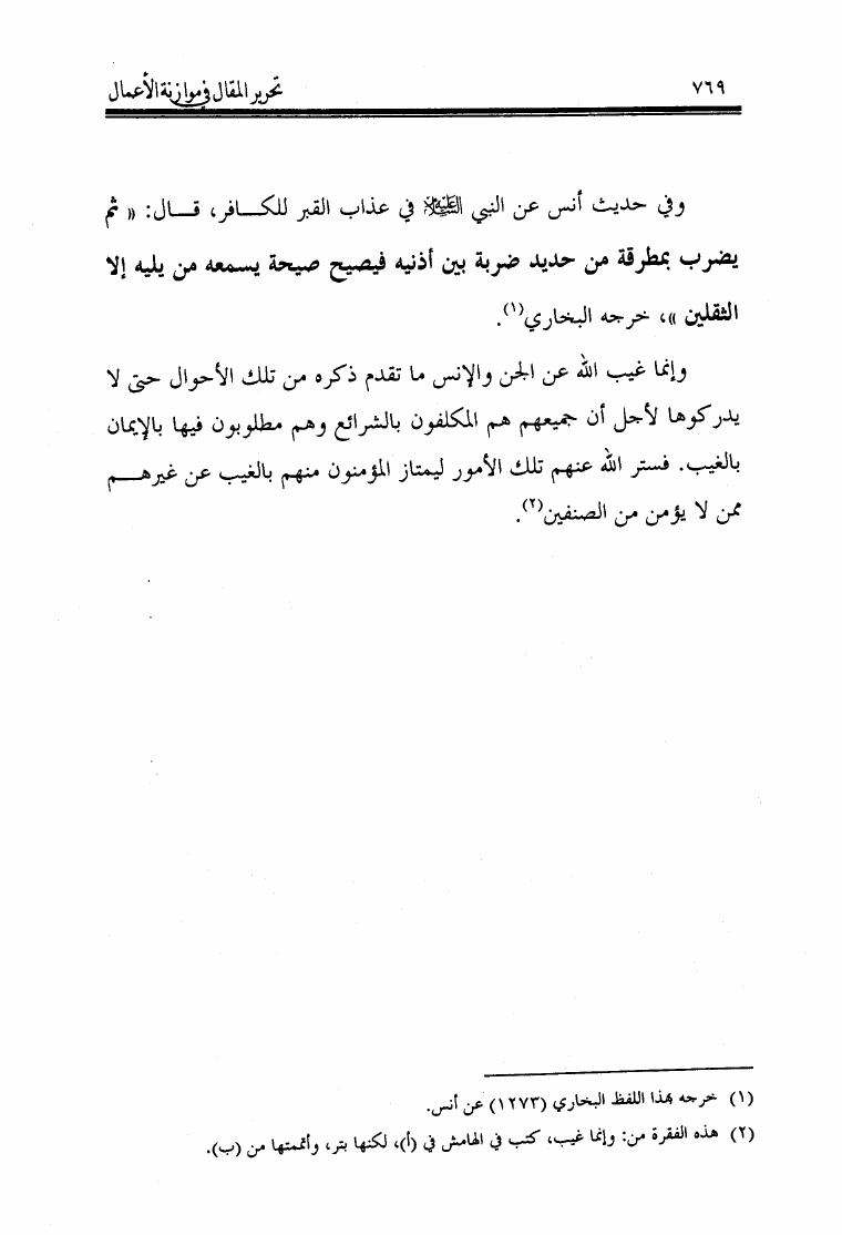 تحرير المقال في موازنة الأعمال وحكم غير المكلفين في العقبى والمآل، ومعه مراتب الجزاء