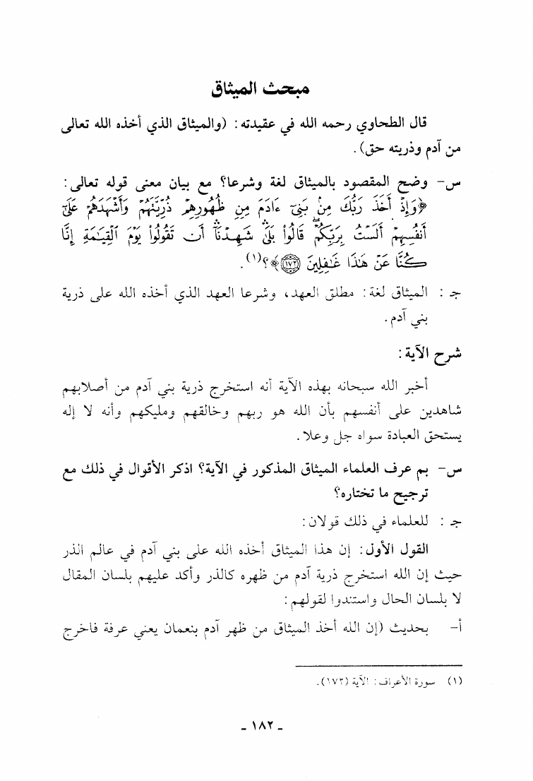 نام کتاب : توضيح بعض المصطلحات العلمية في شرح العقيدة الطحاوية ، ومعه الأسئلة والأجوبة المرضية على شرح الطحاوية نویسنده : محمد بن عبد الرحمن الخميس جلد : 1 صفحه : 182