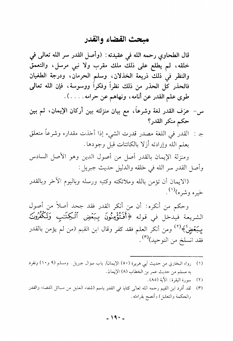 نام کتاب : توضيح بعض المصطلحات العلمية في شرح العقيدة الطحاوية ، ومعه الأسئلة والأجوبة المرضية على شرح الطحاوية نویسنده : محمد بن عبد الرحمن الخميس جلد : 1 صفحه : 190