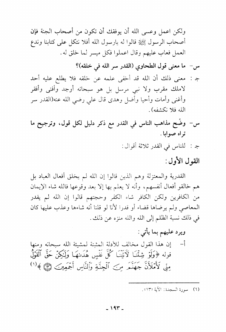 نام کتاب : توضيح بعض المصطلحات العلمية في شرح العقيدة الطحاوية ، ومعه الأسئلة والأجوبة المرضية على شرح الطحاوية نویسنده : محمد بن عبد الرحمن الخميس جلد : 1 صفحه : 193