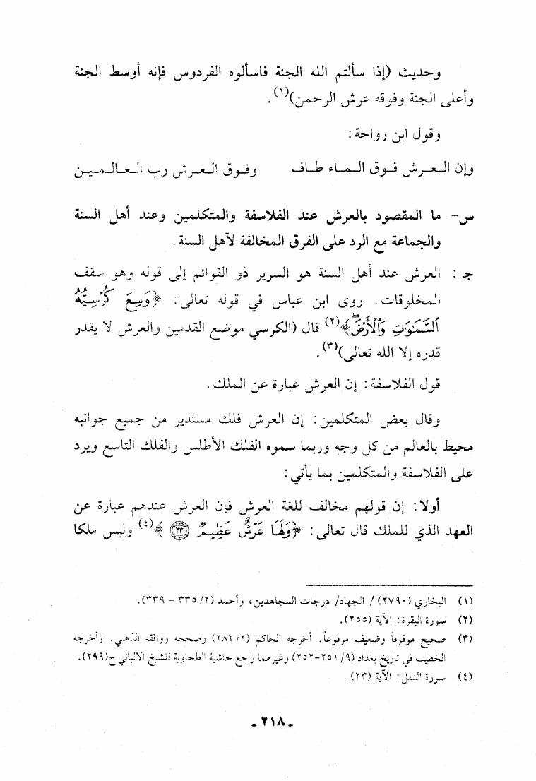 نام کتاب : توضيح بعض المصطلحات العلمية في شرح العقيدة الطحاوية ، ومعه الأسئلة والأجوبة المرضية على شرح الطحاوية نویسنده : محمد بن عبد الرحمن الخميس جلد : 1 صفحه : 218