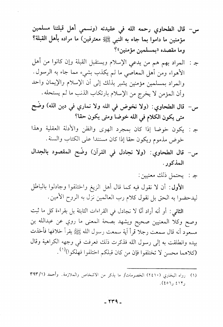 نام کتاب : توضيح بعض المصطلحات العلمية في شرح العقيدة الطحاوية ، ومعه الأسئلة والأجوبة المرضية على شرح الطحاوية نویسنده : محمد بن عبد الرحمن الخميس جلد : 1 صفحه : 239