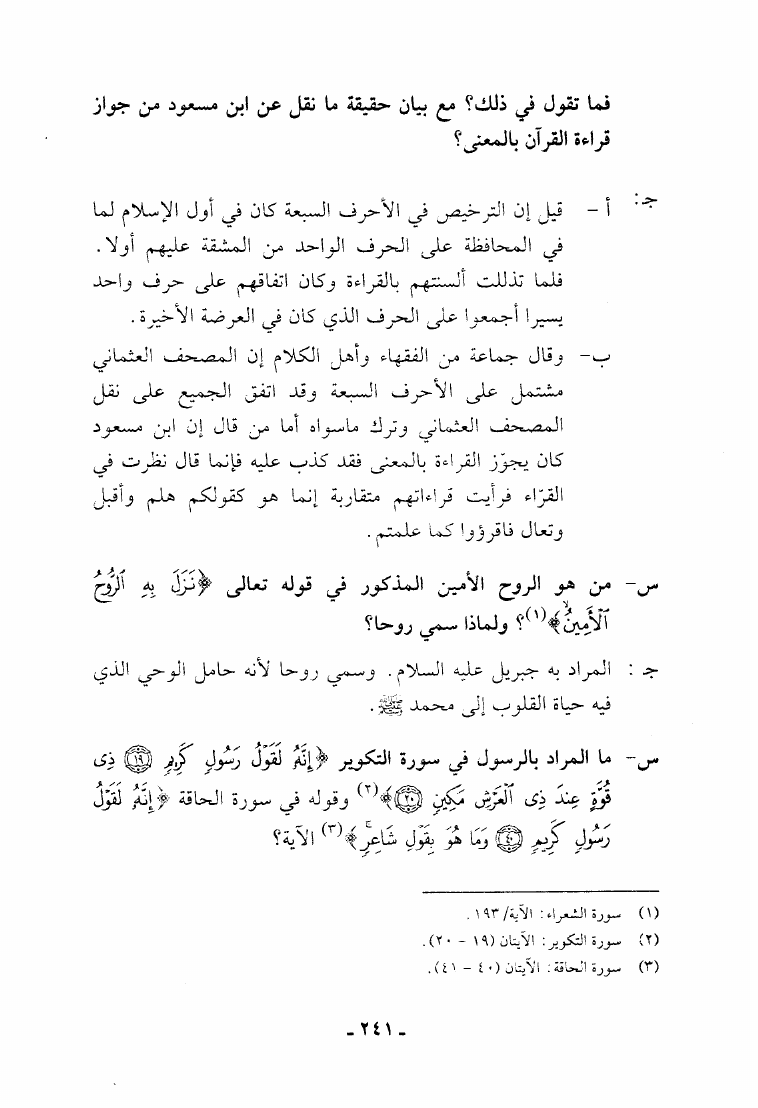 نام کتاب : توضيح بعض المصطلحات العلمية في شرح العقيدة الطحاوية ، ومعه الأسئلة والأجوبة المرضية على شرح الطحاوية نویسنده : محمد بن عبد الرحمن الخميس جلد : 1 صفحه : 241