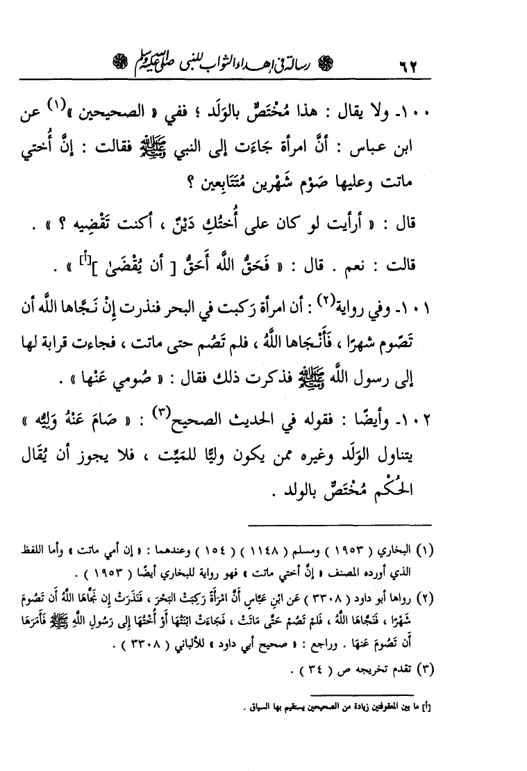 رسالة في إهداء الثواب للنبي صلى الله عليه وسلم ومعها مسائل في إهداء القربات للأموات، رسالة في قوله تعالى وأن ليس للإنسان إلا ما سعى