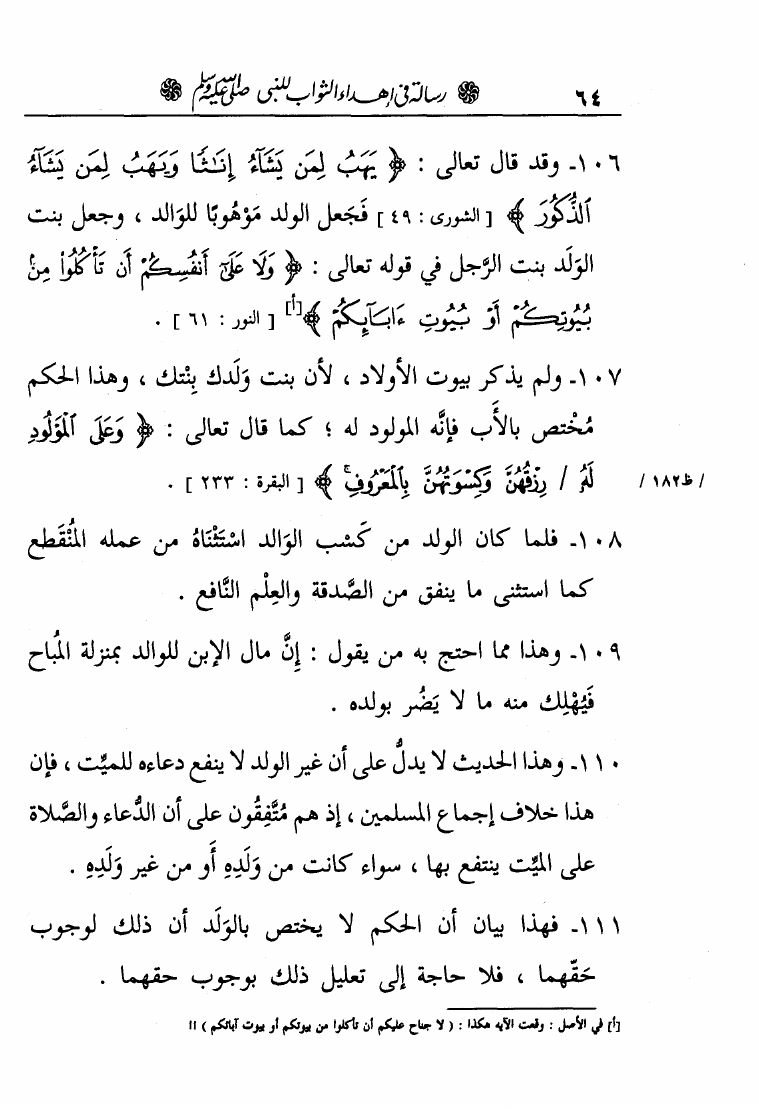 رسالة في إهداء الثواب للنبي صلى الله عليه وسلم ومعها مسائل في إهداء القربات للأموات، رسالة في قوله تعالى وأن ليس للإنسان إلا ما سعى