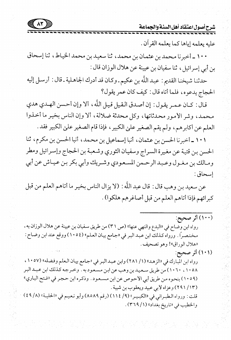 شرح أصول اعتقاد أهل السنة والجماعة