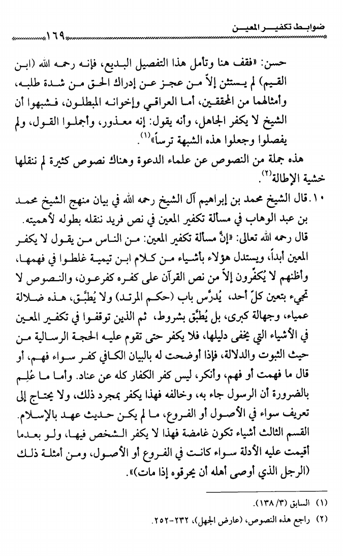 نام کتاب : ضوابط تكفير المعين عند شيخي الإسلام ابن تيمية وابن عبد الوهاب وعلماء الدعوة الإصلاحية نویسنده : راشد بن أبي العلا الراشد أبو العلا جلد : 1 صفحه : 169