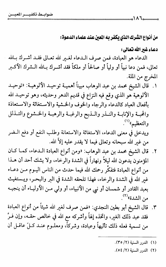 نام کتاب : ضوابط تكفير المعين عند شيخي الإسلام ابن تيمية وابن عبد الوهاب وعلماء الدعوة الإصلاحية نویسنده : راشد بن أبي العلا الراشد أبو العلا جلد : 1 صفحه : 186