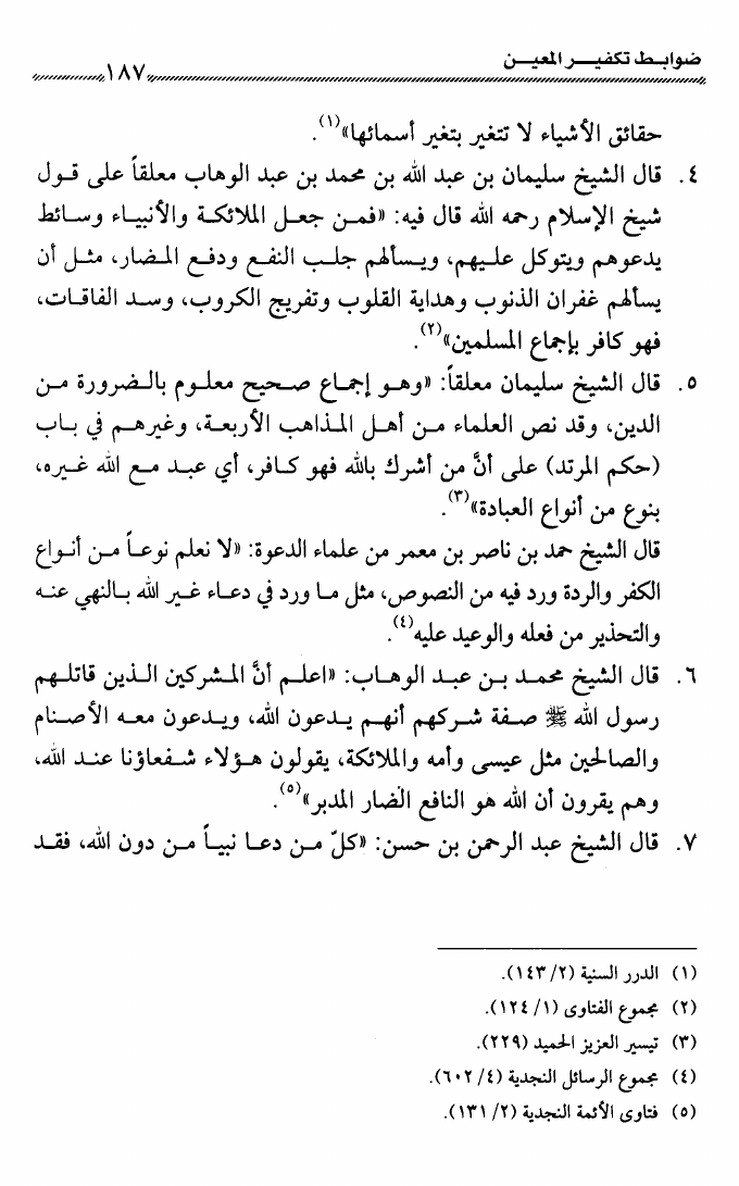 نام کتاب : ضوابط تكفير المعين عند شيخي الإسلام ابن تيمية وابن عبد الوهاب وعلماء الدعوة الإصلاحية نویسنده : راشد بن أبي العلا الراشد أبو العلا جلد : 1 صفحه : 187