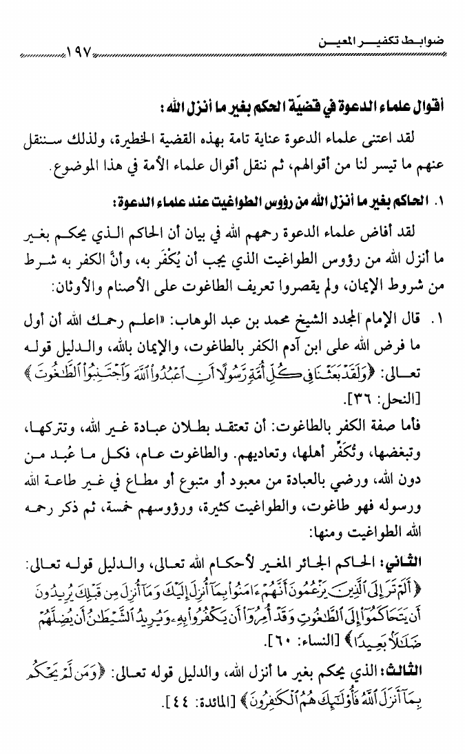 نام کتاب : ضوابط تكفير المعين عند شيخي الإسلام ابن تيمية وابن عبد الوهاب وعلماء الدعوة الإصلاحية نویسنده : راشد بن أبي العلا الراشد أبو العلا جلد : 1 صفحه : 197