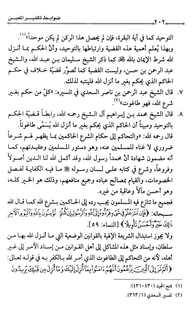 نام کتاب : ضوابط تكفير المعين عند شيخي الإسلام ابن تيمية وابن عبد الوهاب وعلماء الدعوة الإصلاحية نویسنده : راشد بن أبي العلا الراشد أبو العلا جلد : 1 صفحه : 202