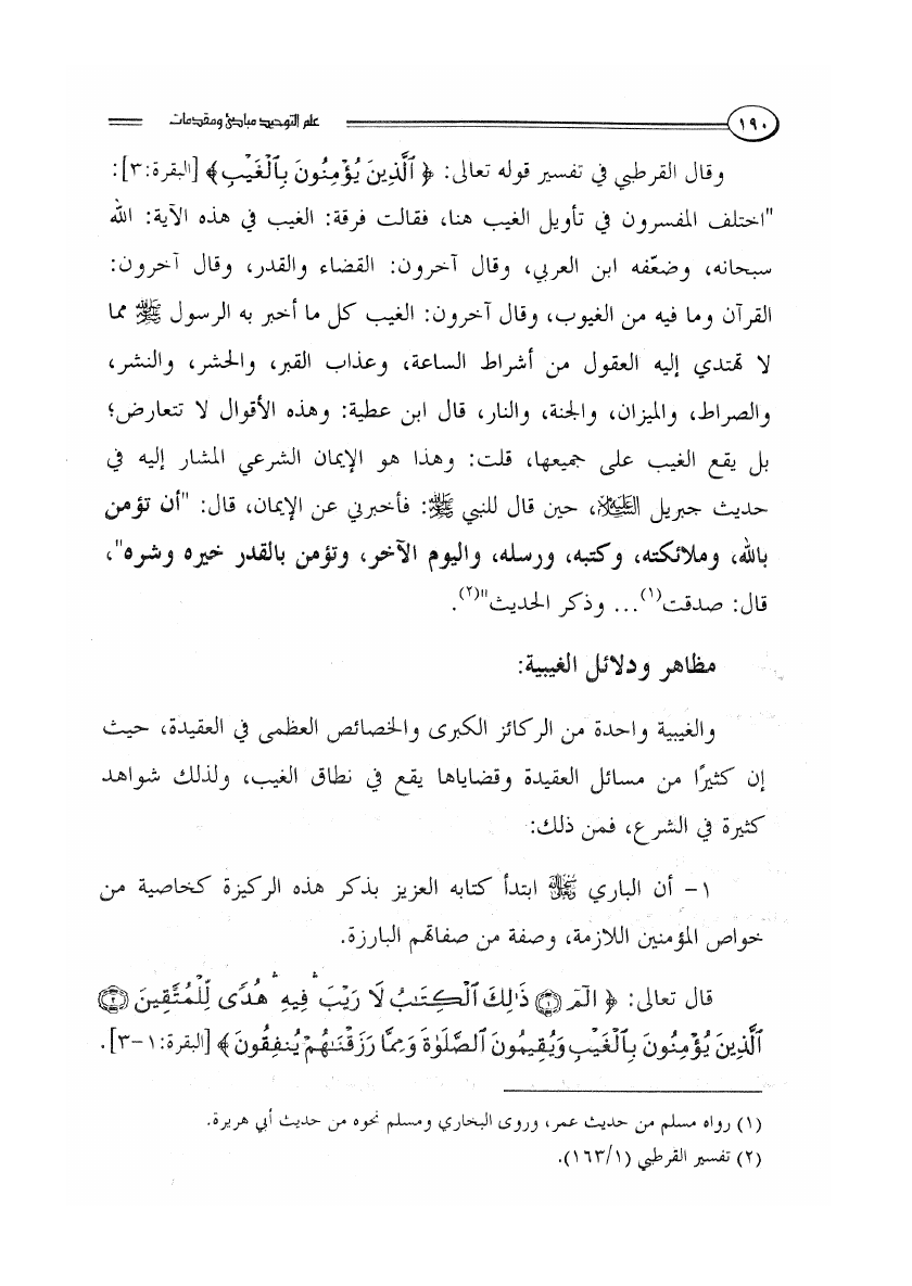 علم التوحيد عند أهل السنة والجماعة المبادئ والمقدمات