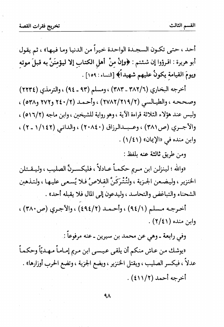 قصة المسيح الدجال ونزول عيسى عليه السلام وقتله إياه على سياق رواية أبي أمامة