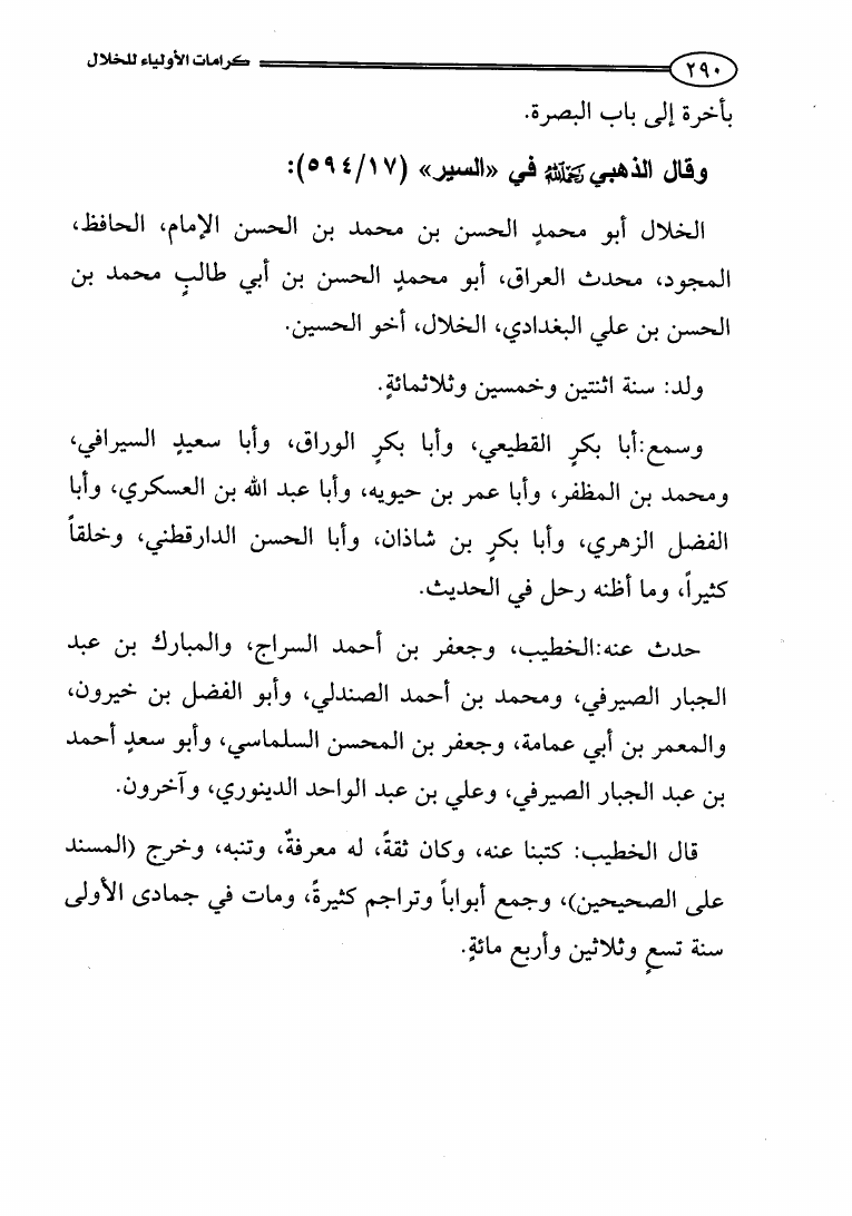 هبة الله بن الحسن بن منصور الطبري اللالكائي أبو القاسم - الحسن بن محمد بن الحسن الخلال أبو محمد